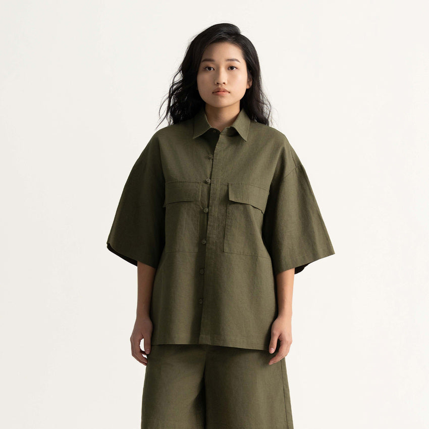 Utility Oversized Linen Blend Shirt