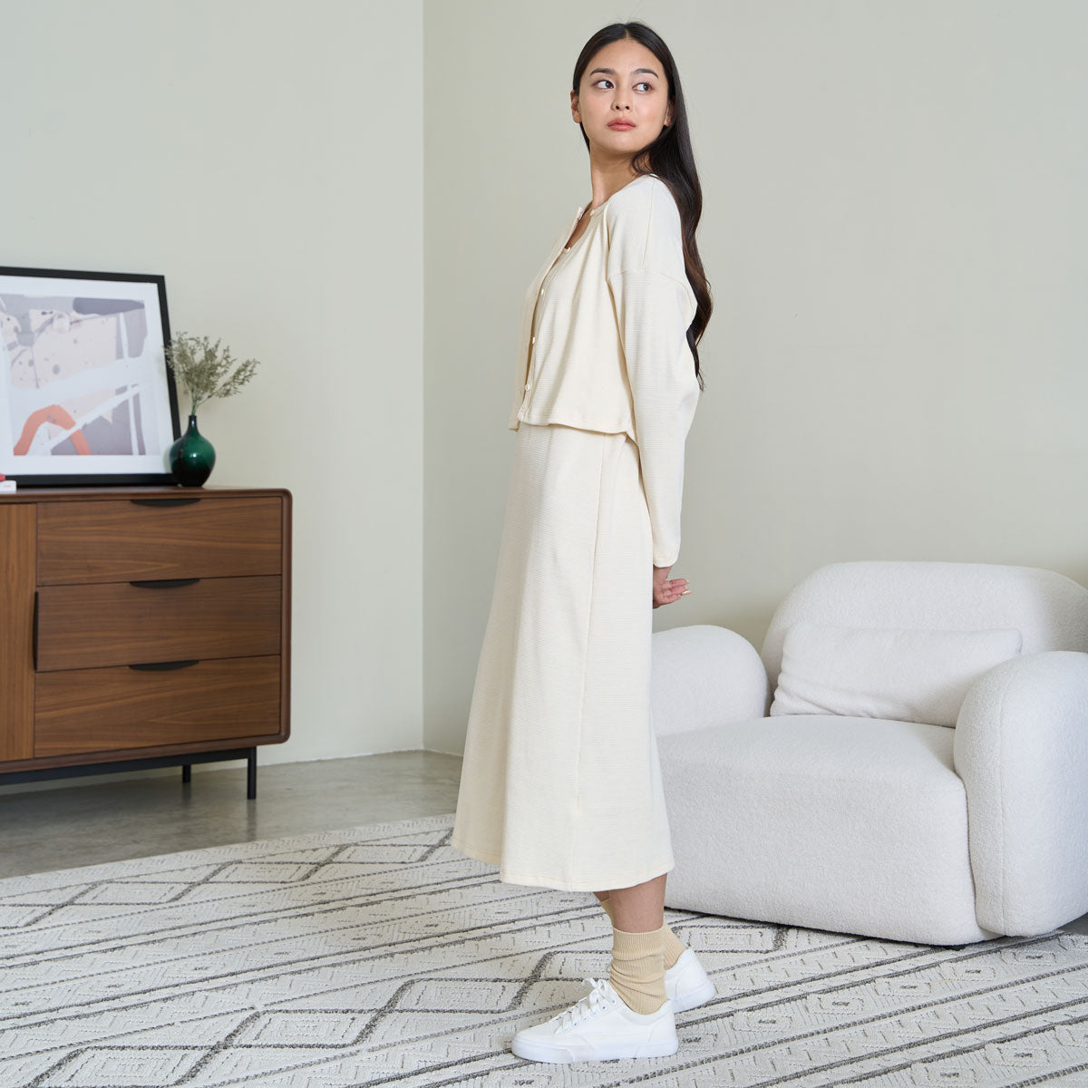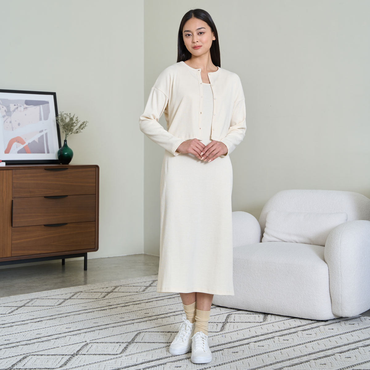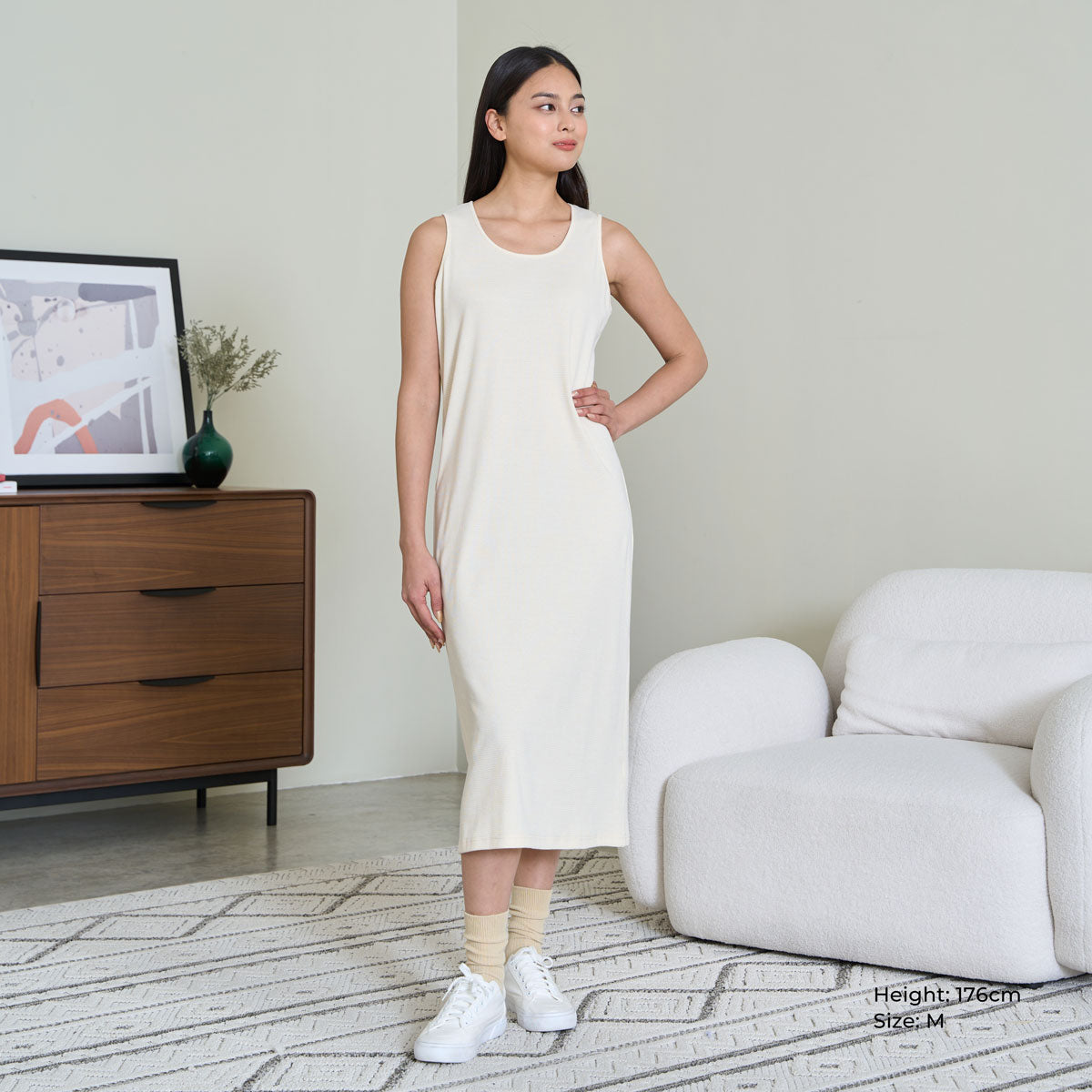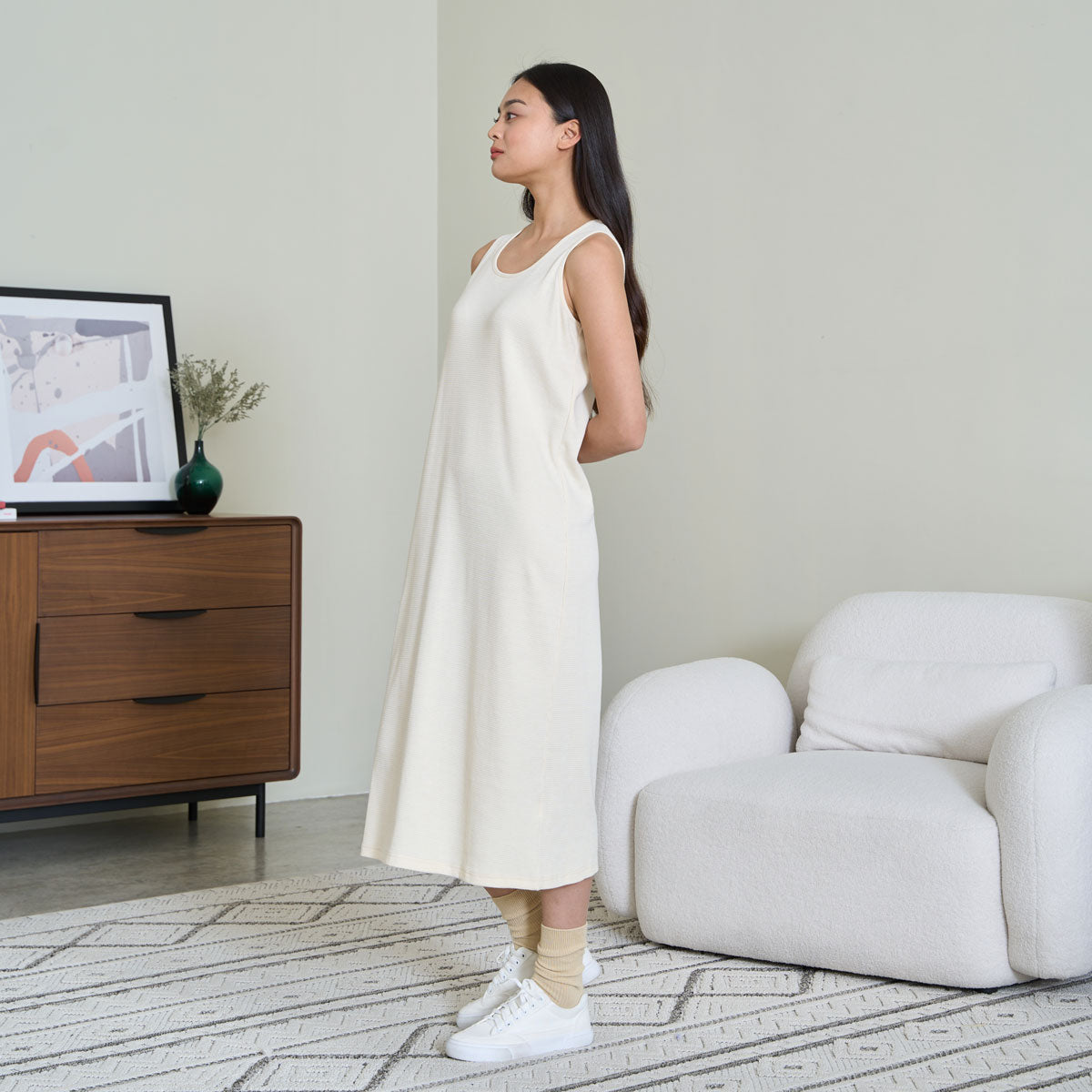 Ribbed Midi Dress (Cream)