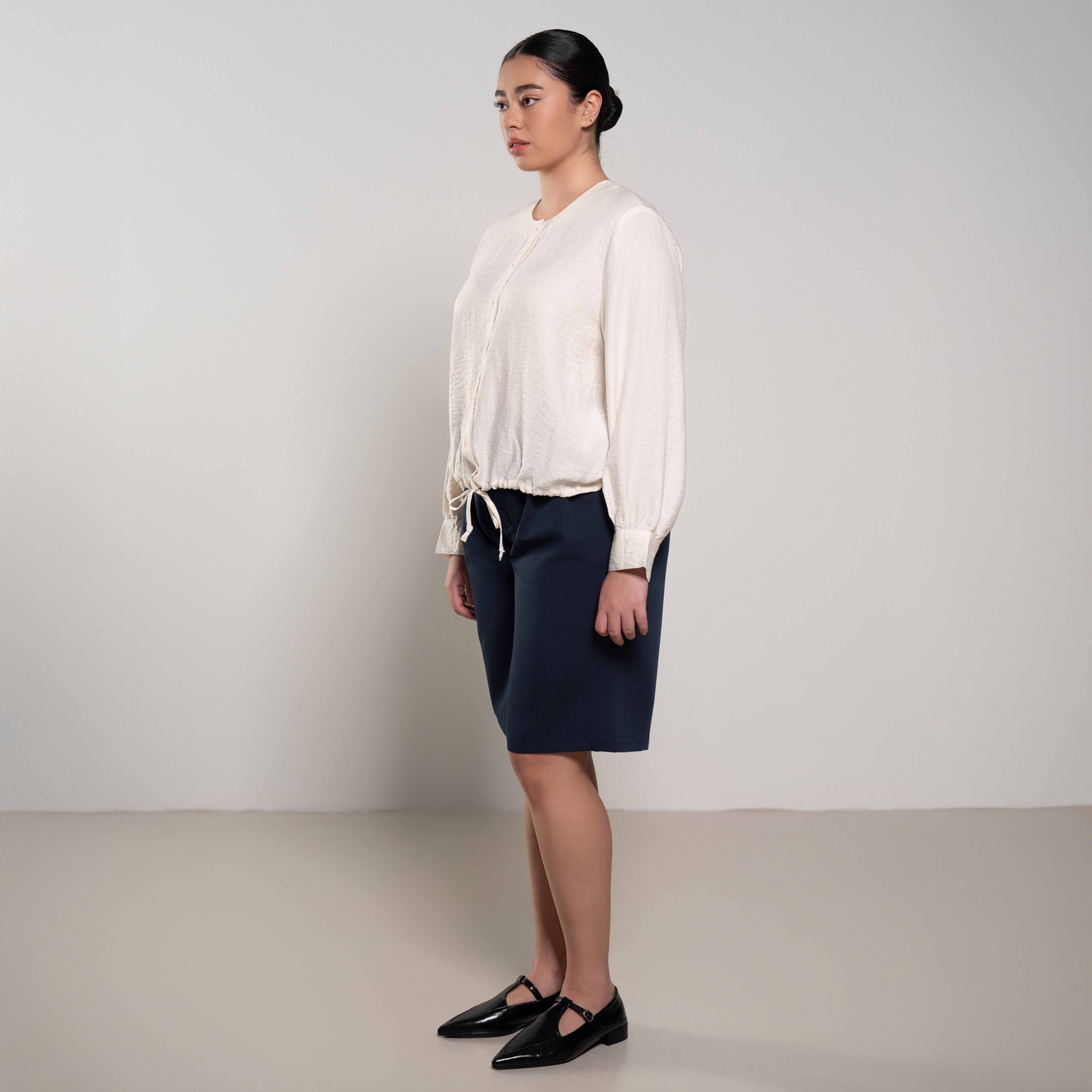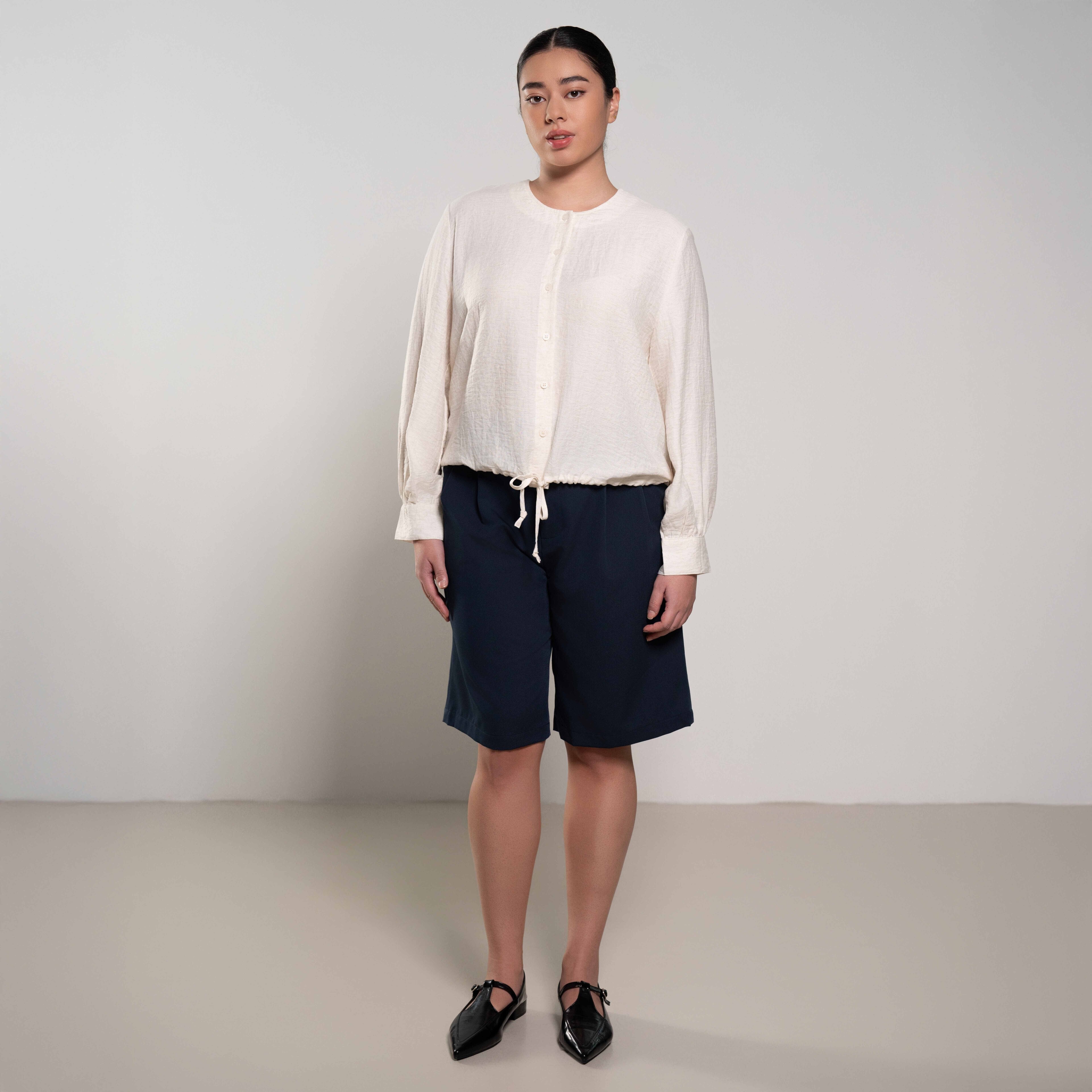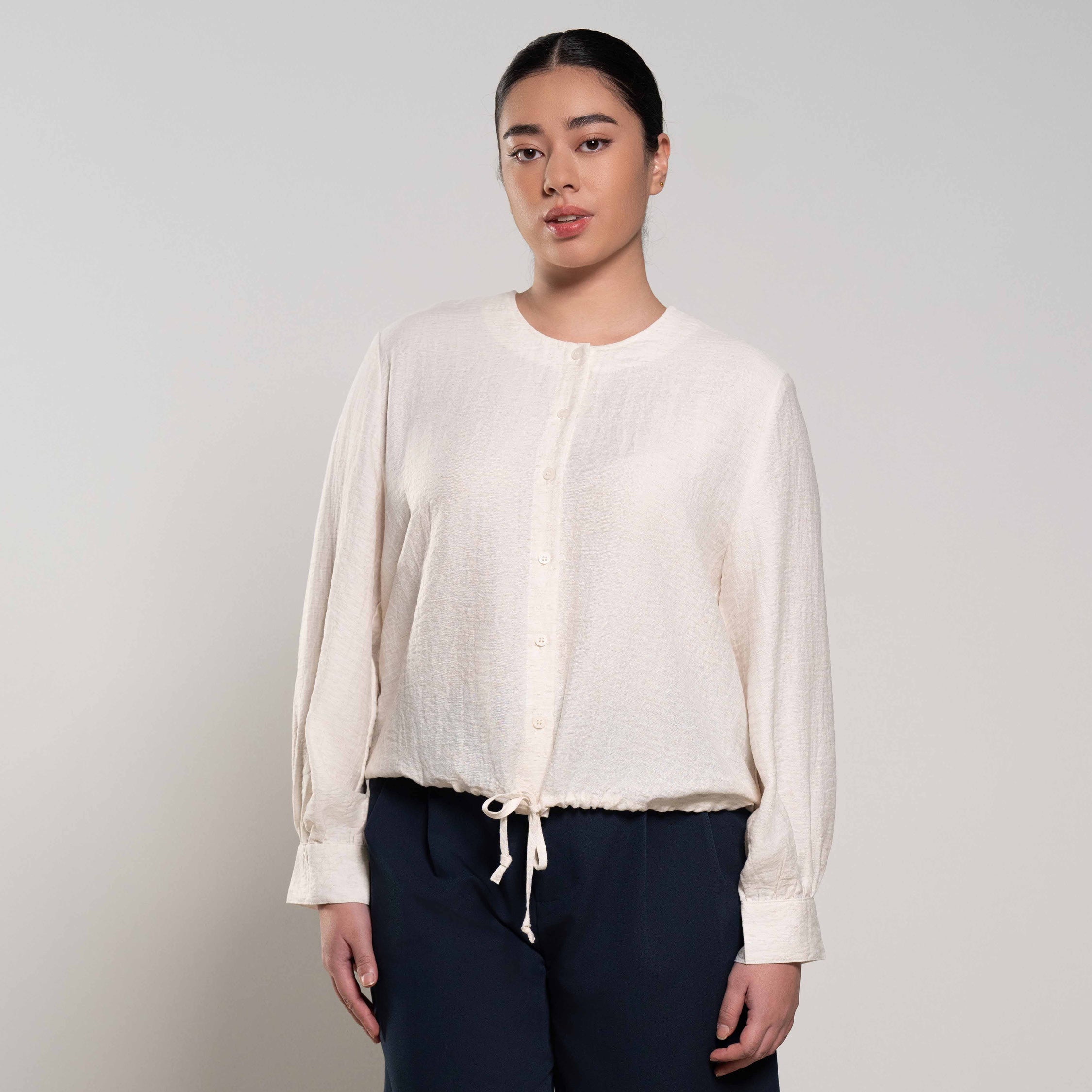 Drawstring Hem Button-Up Shirt