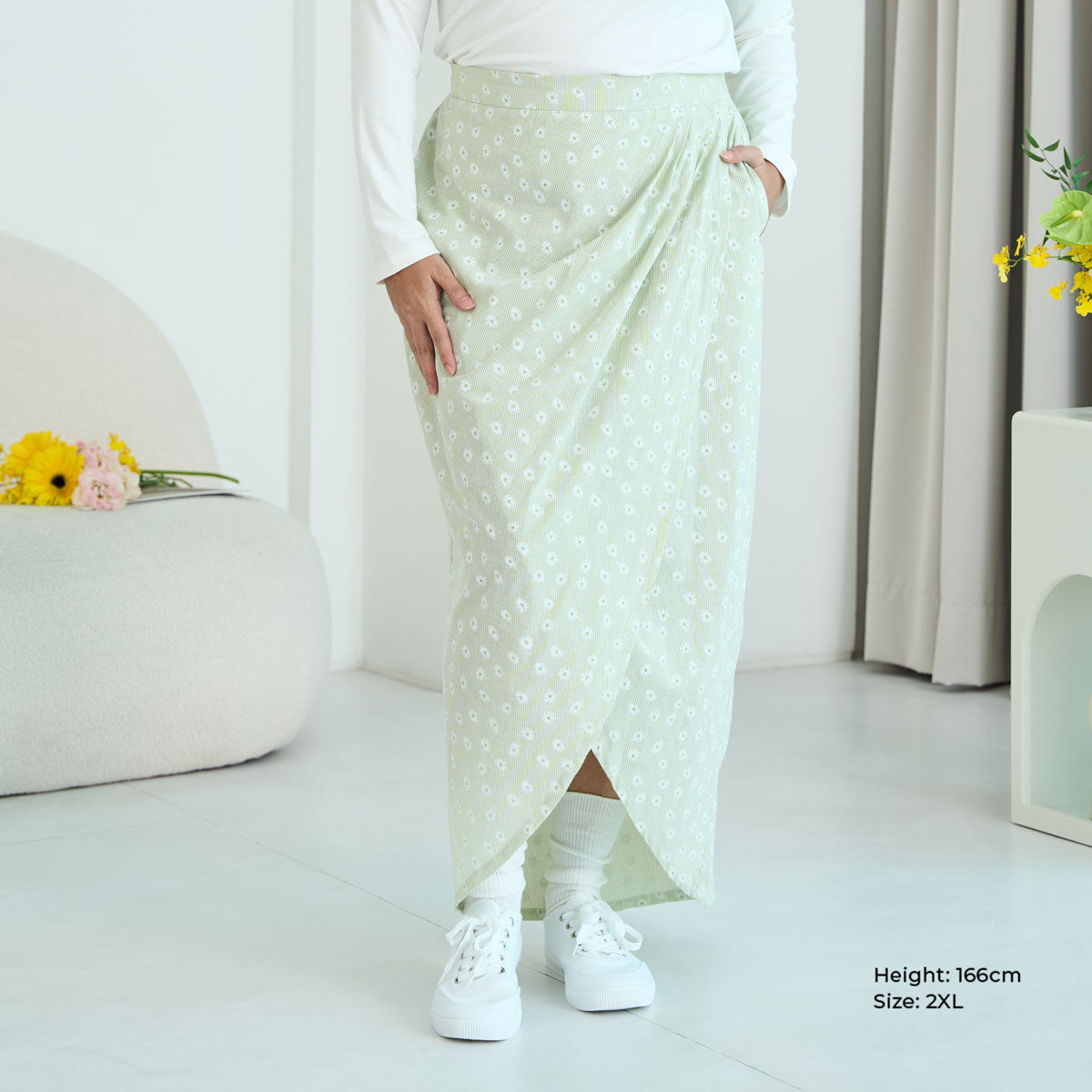 Floral Ruched Maxi Tulip Skirt (Light Green)