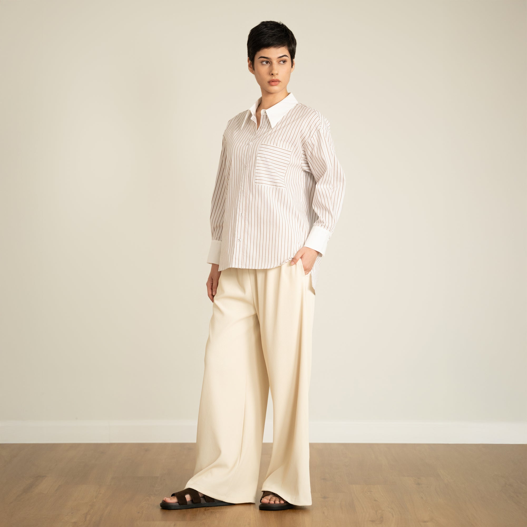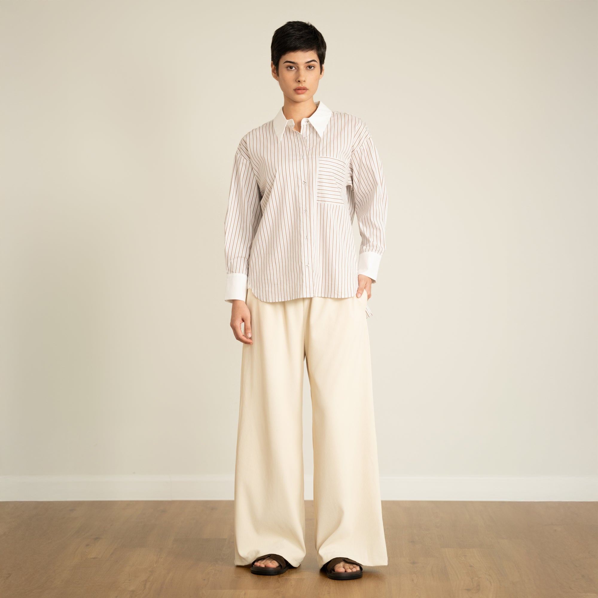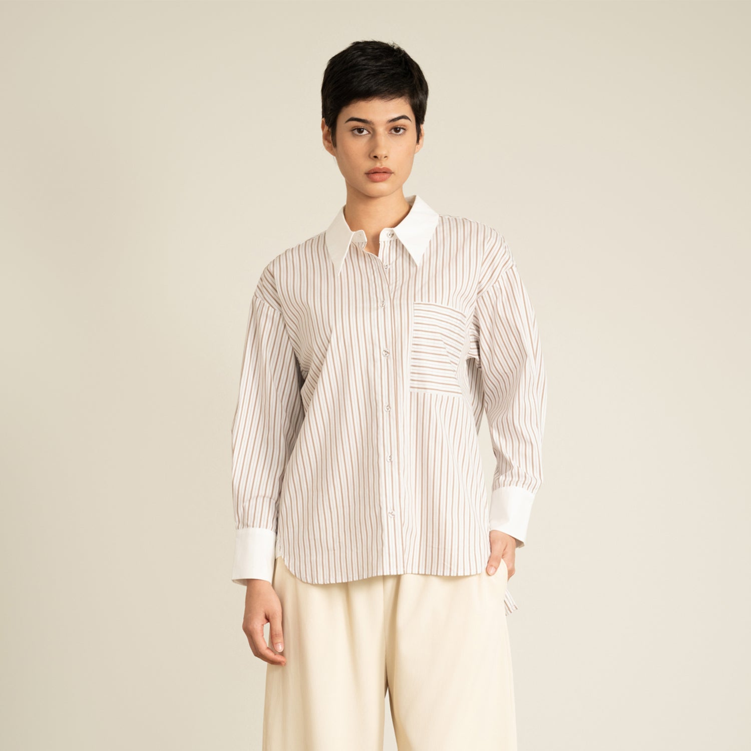 Contrast Collar Stripe Shirt