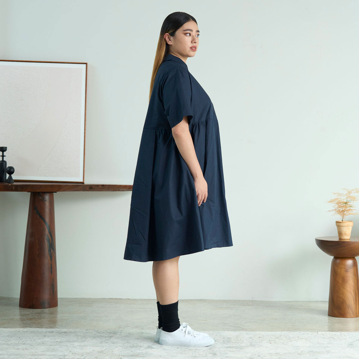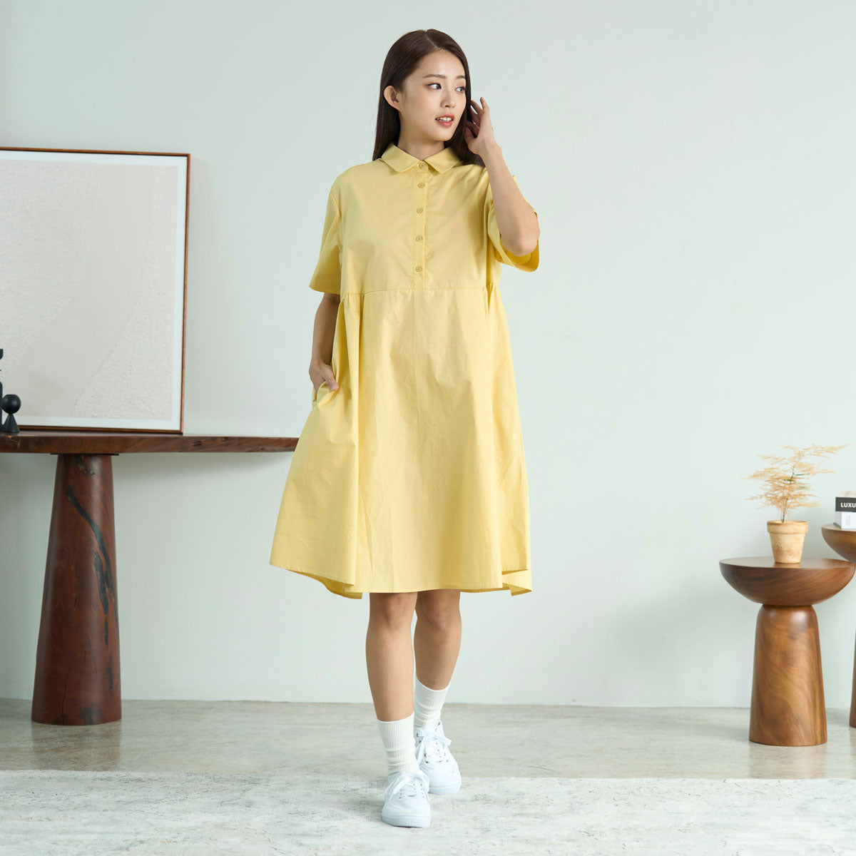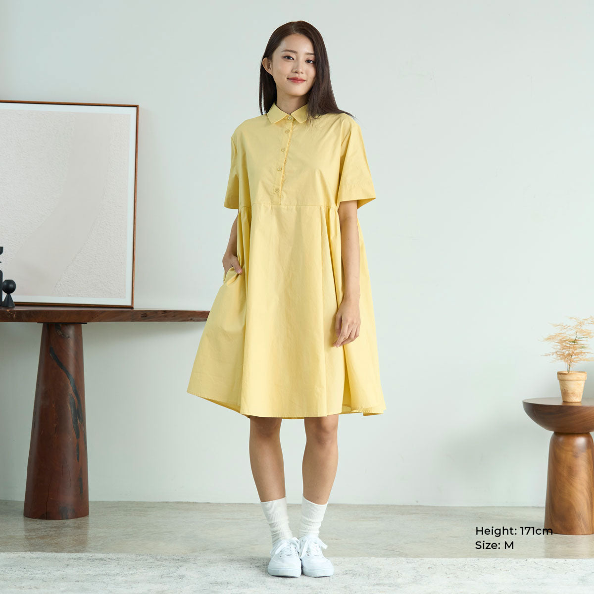 Gathered Midi Shirt Dress