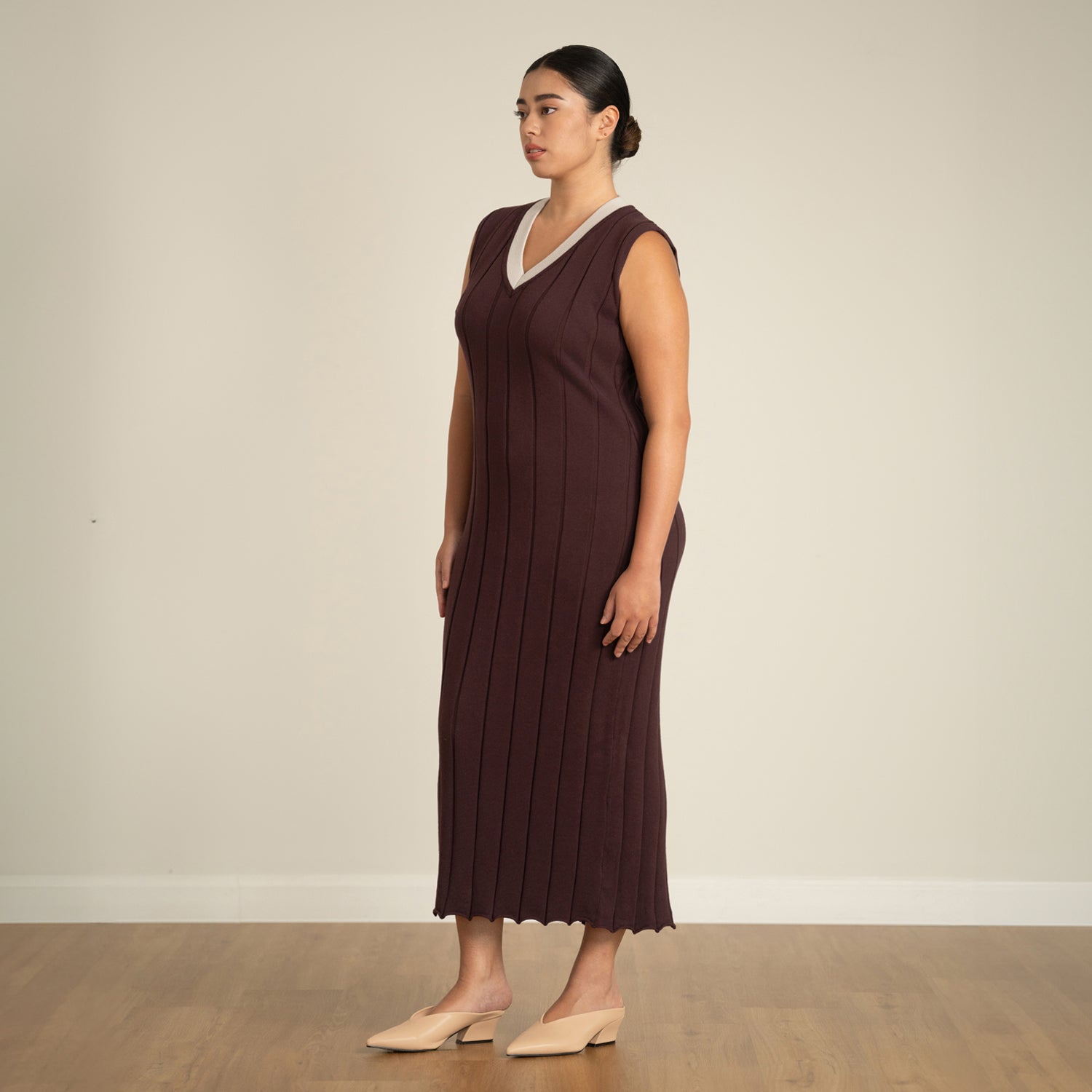 Textured Knit V-Neck Midaxi Dress